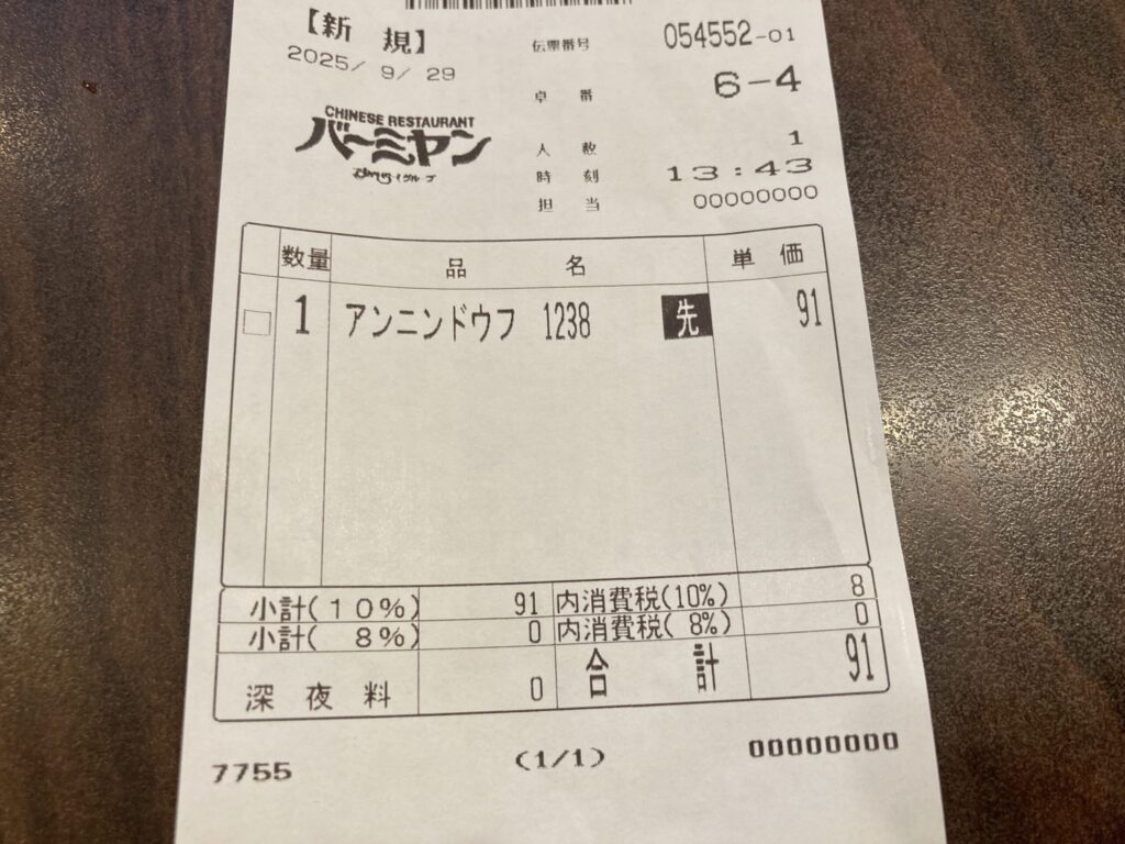 バースデークーポンだけを使って杏仁豆腐を食しました。