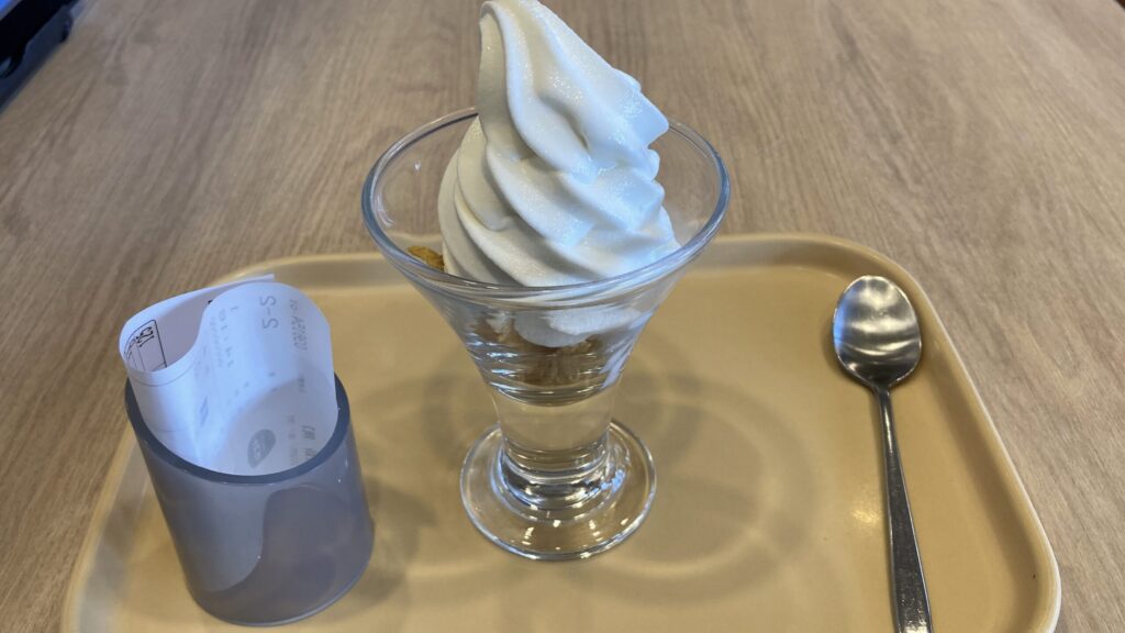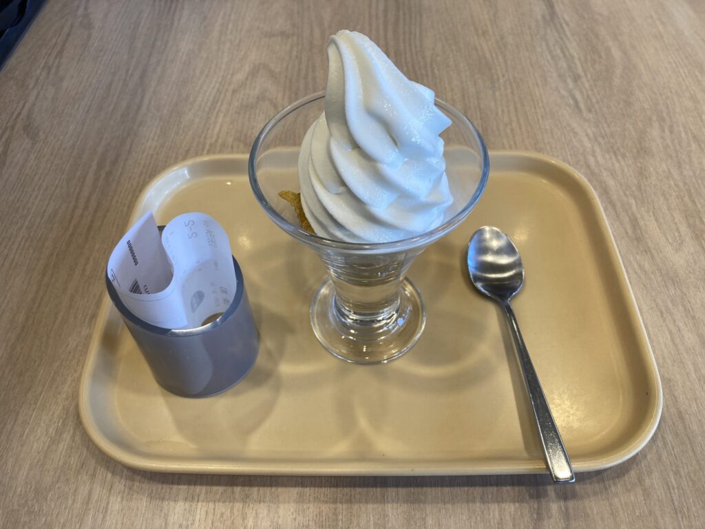 ランチメニューがいっぱいあるようですが、とも君はバースデークーポンのソフトクリームを頼んだ。