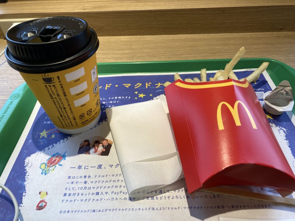 毎度のLポテチとホットコーヒーMそれぞれのクーポンで購入した。これで410円です。