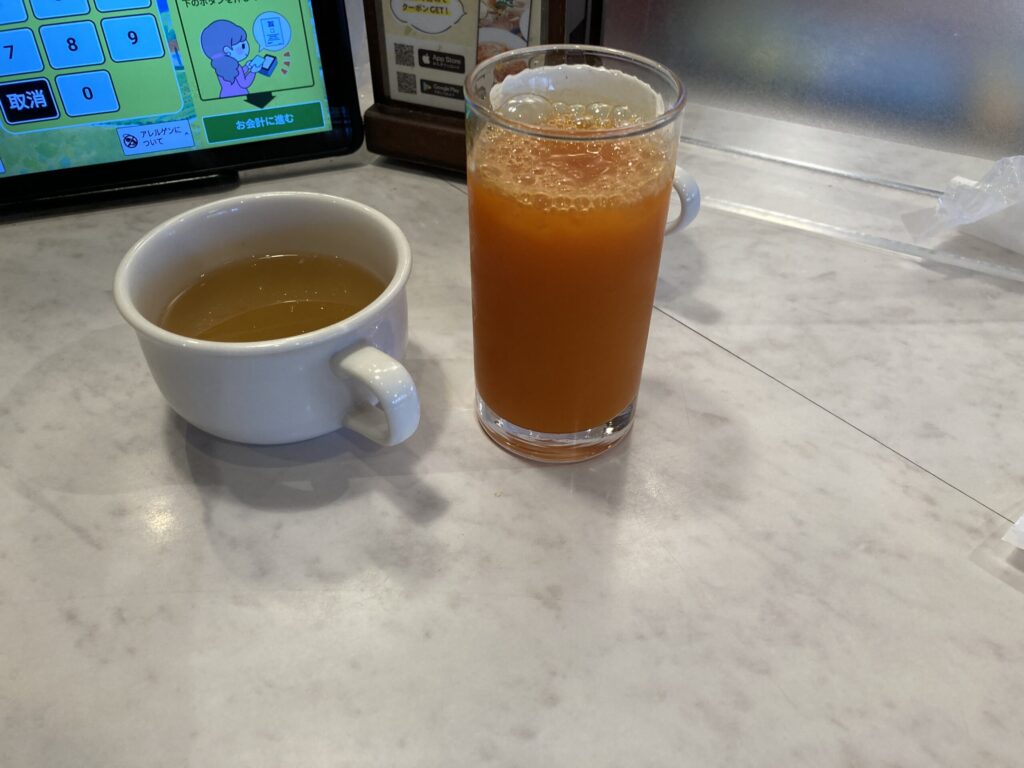 頼んだら先ずはドリンクバーにて飲み物とスープを持ってきます。