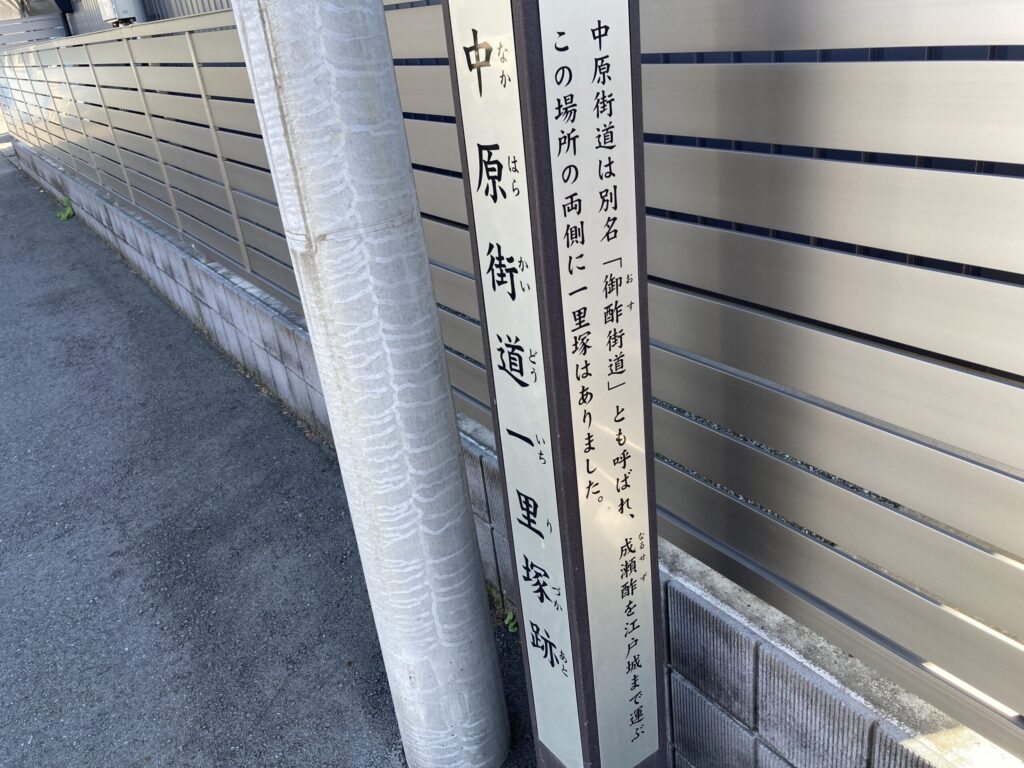 中原街道一里塚の案内板のところを通っていきます。ここは珈琲店の近くにあります。