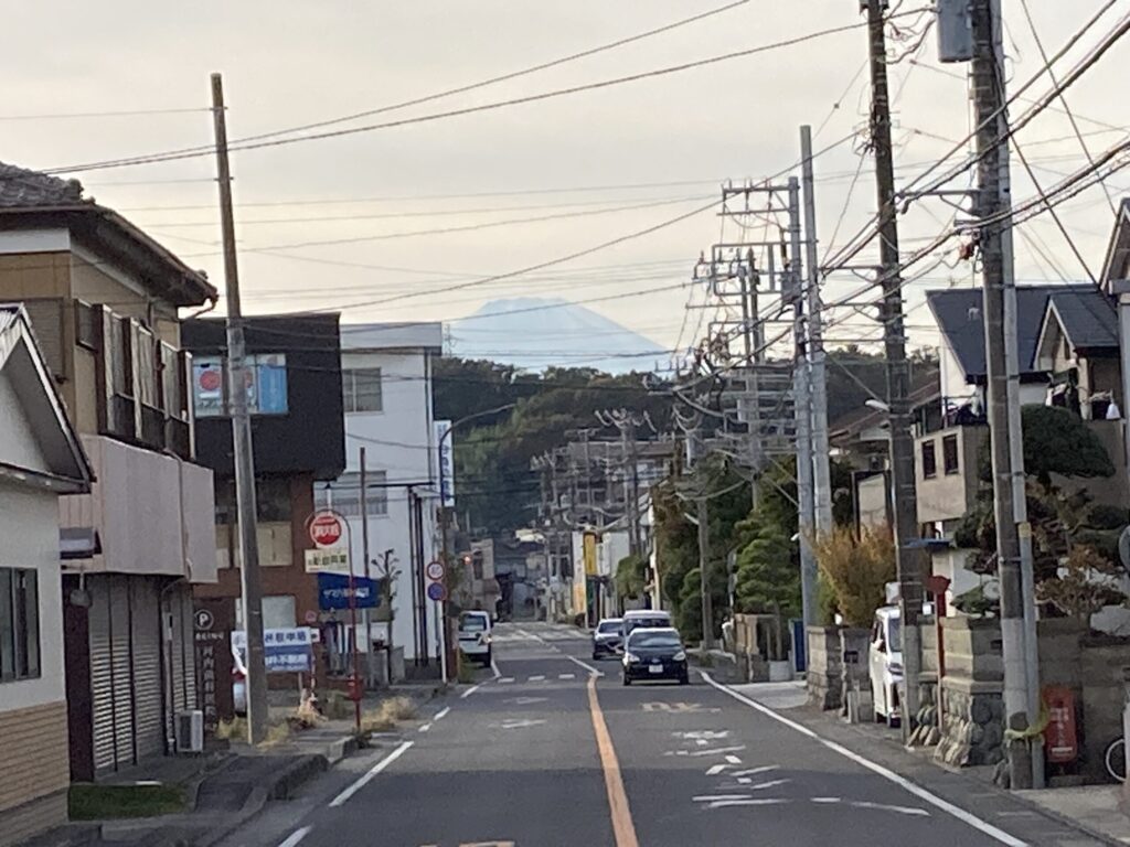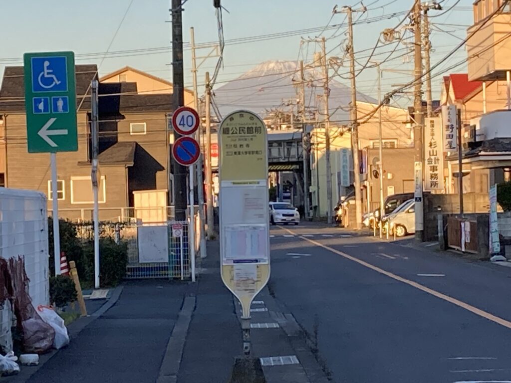 その前に神奈川県平塚市にある神奈川中央交通の纒公民館前バス停で富士山をパチリしたよ。