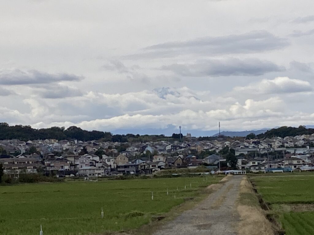 神奈川県平塚市の入部で富士山の頂上が見えてきたのでパチリしてみたよ。