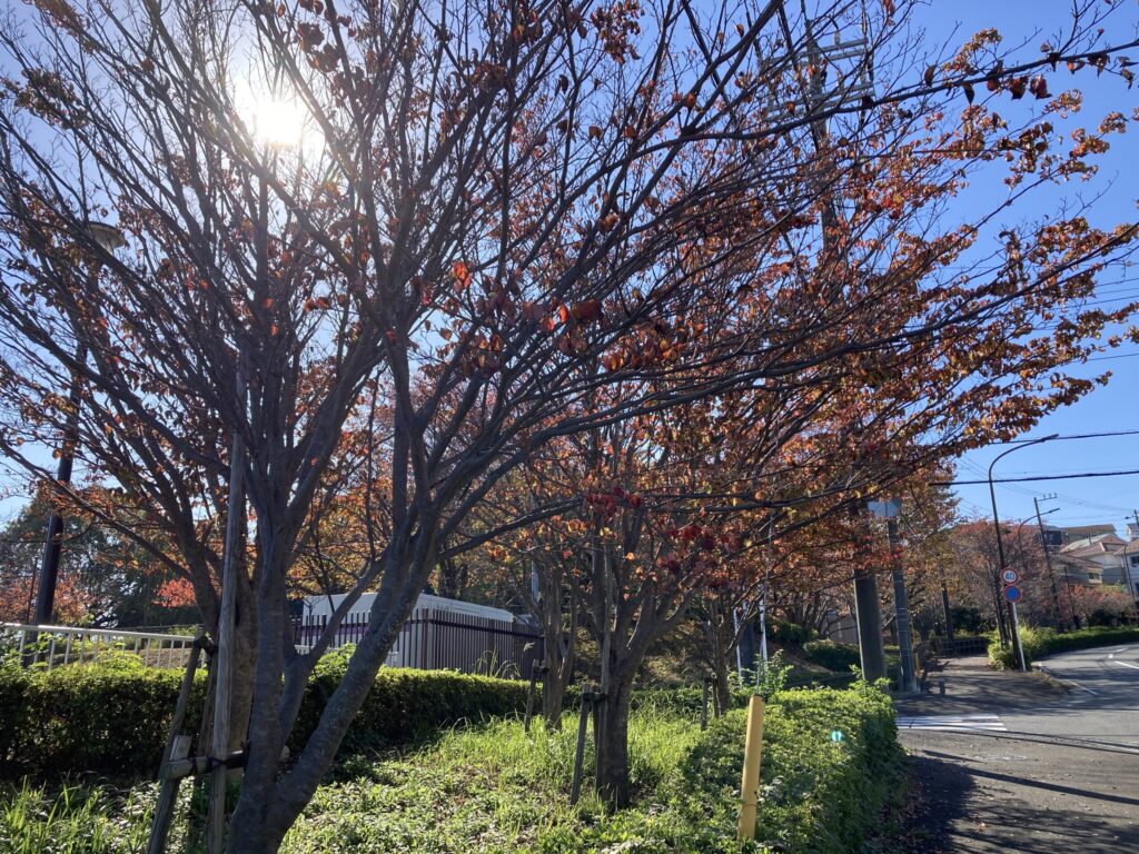 めぐみが丘の周回路の木々はもう少しでかもう枯れてしまっていました。