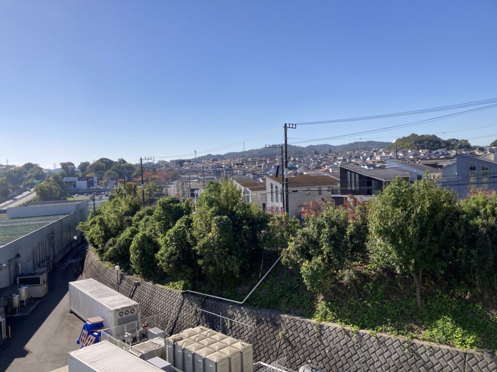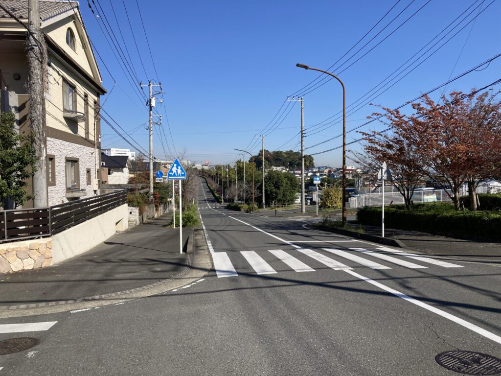 屋上駐車場からめぐみが丘の道路をパチリしたよ。