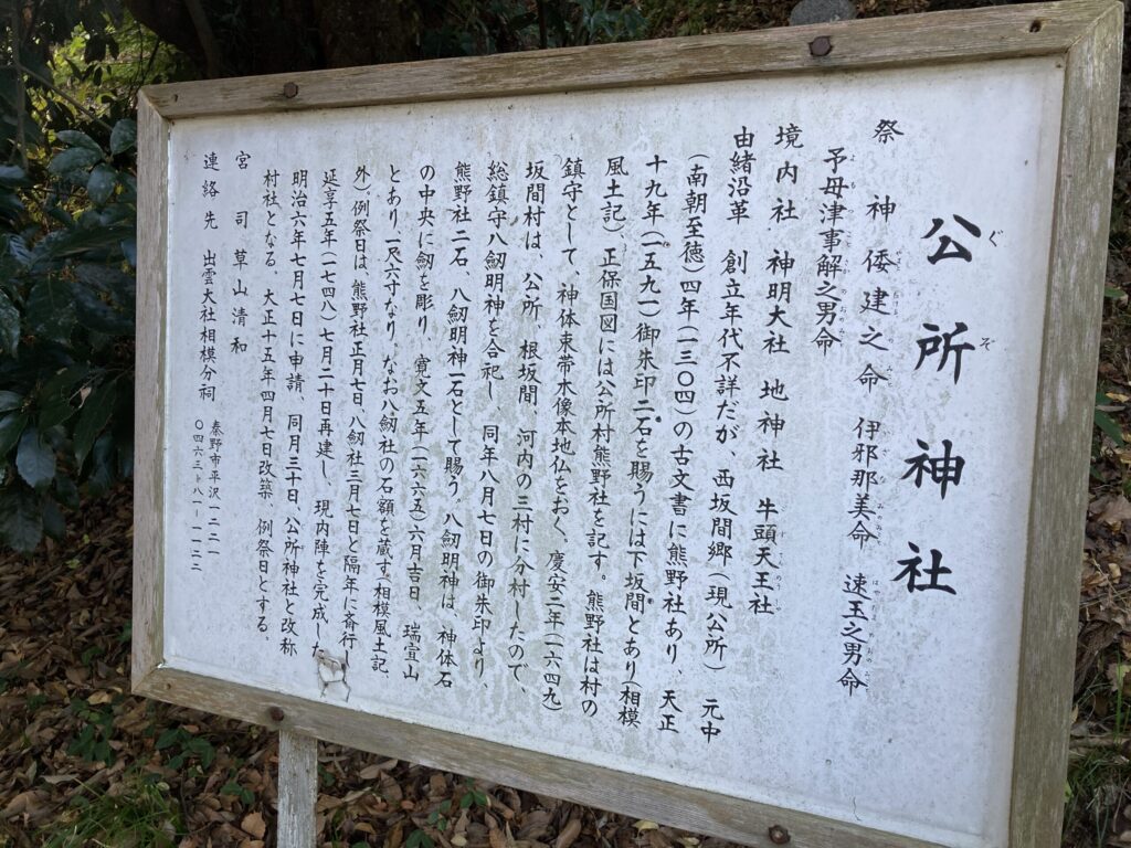 そのまま進んでいくと公所の池が見えて小田原厚木道路のガードをくぐると公所神社に出てきます。