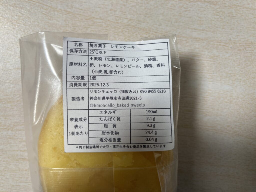このレモンケーキには原材料にあるレモンピールがアクセントになりおいしさが一層際立つのでしょうかね。