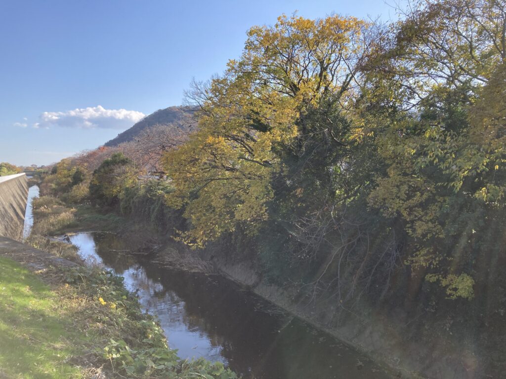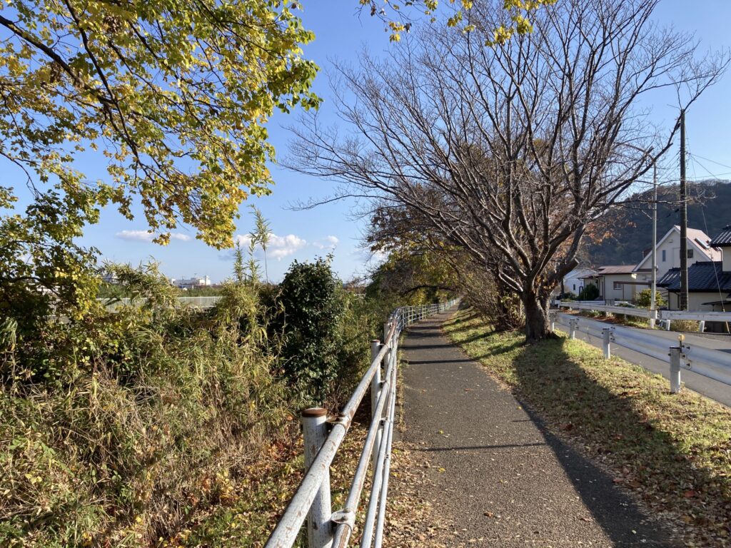 サイクリング道路を南下して春に桜並木が奇麗な場所で紅葉の状況を見に行きました。