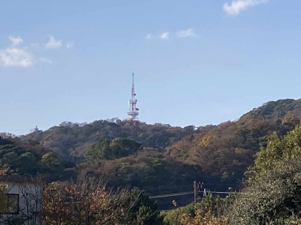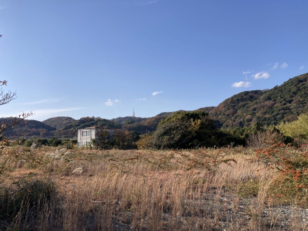 東海道線の線路くぐってたま屋の前の空き地と湘南平をパチリしたよ。