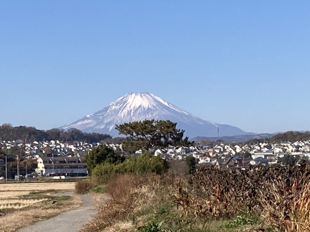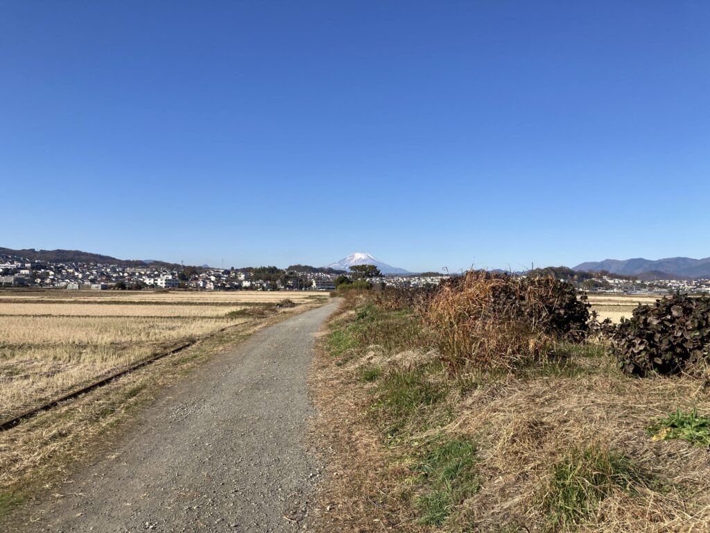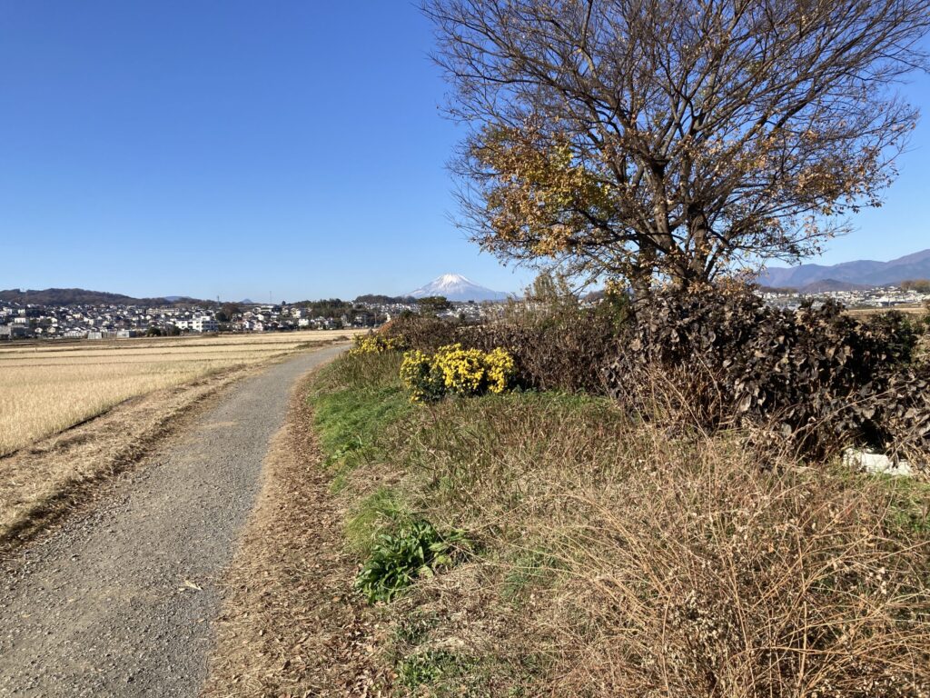 纒の控え土手の松と一緒に富士山をパチリしたいため畦道向かいました。