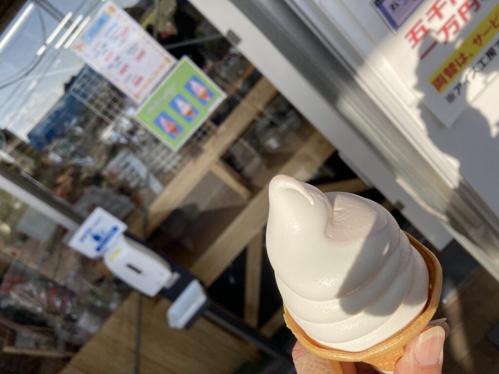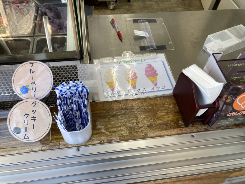 今日は月曜なのでソフトクリームの日で50円引きなのでミックスのソフトクリームを頼んだ。