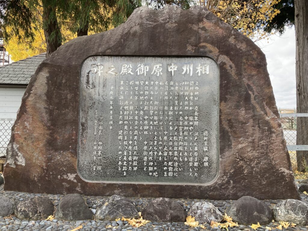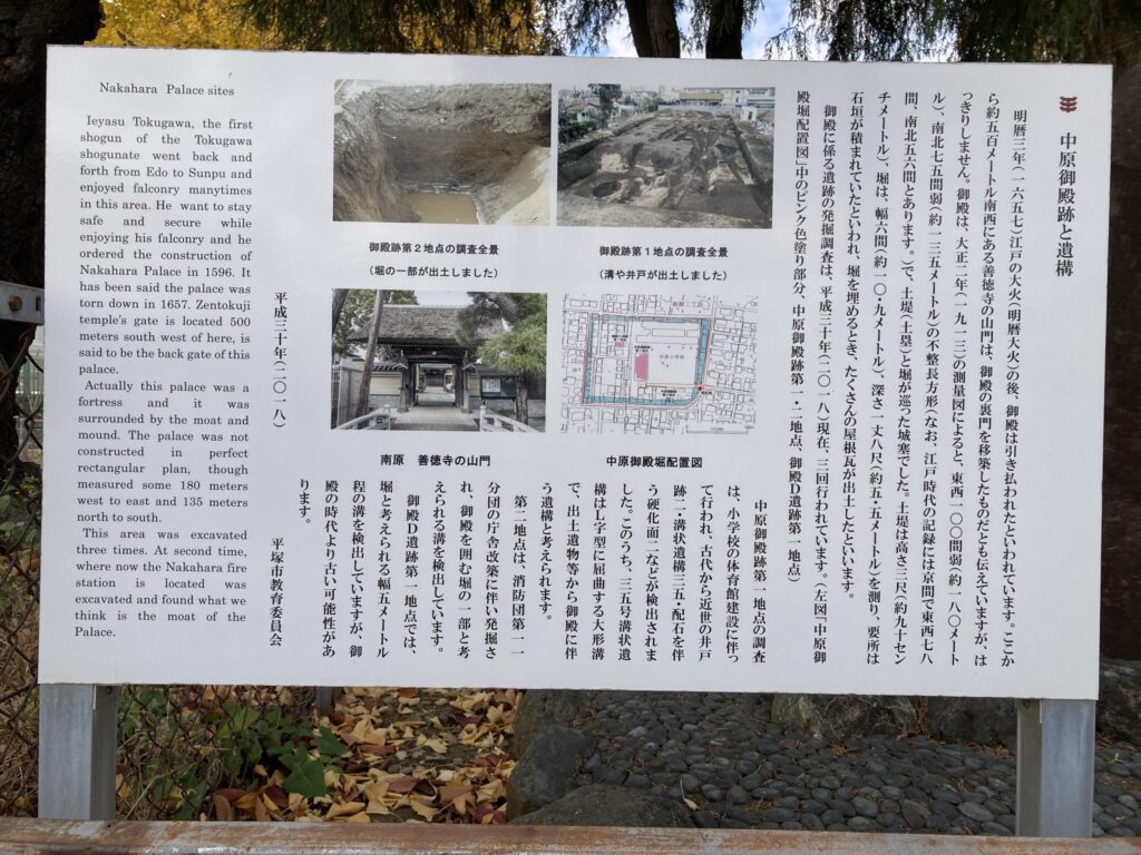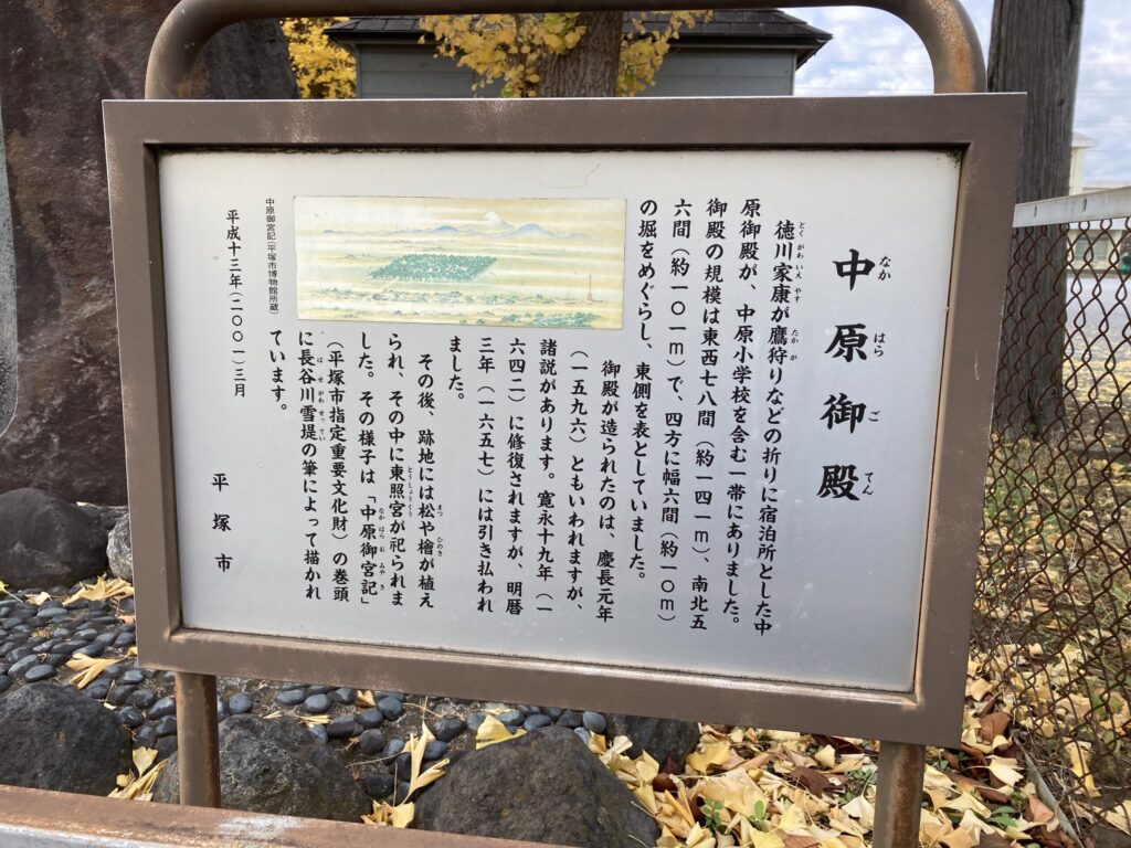 神奈川県平塚市立中原小学校の門の近くに中原御殿の案内板などがあります。