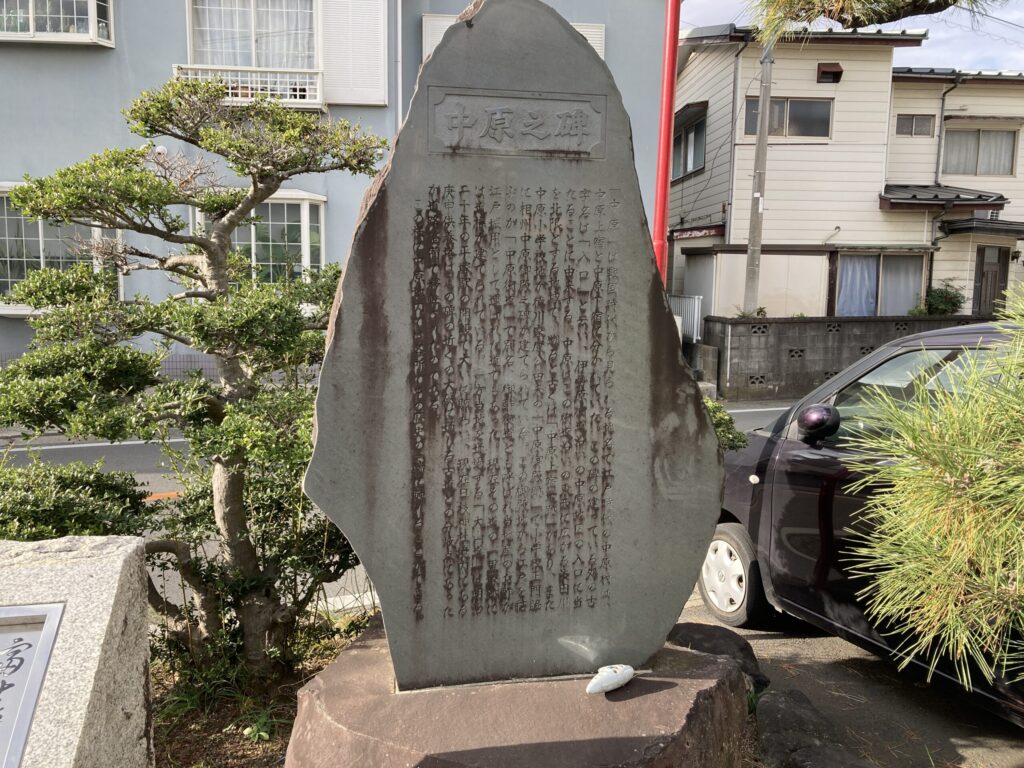 中原御殿跡を南下して相州中原富士の碑の前を通過した。