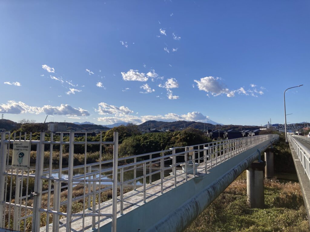平塚大橋恒例の金目川と湘南平をパチリしたよ。