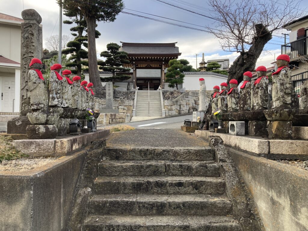 神奈川県平塚市広川の方に向かいます。そこで善福寺の前にお地蔵様が並んでいました。