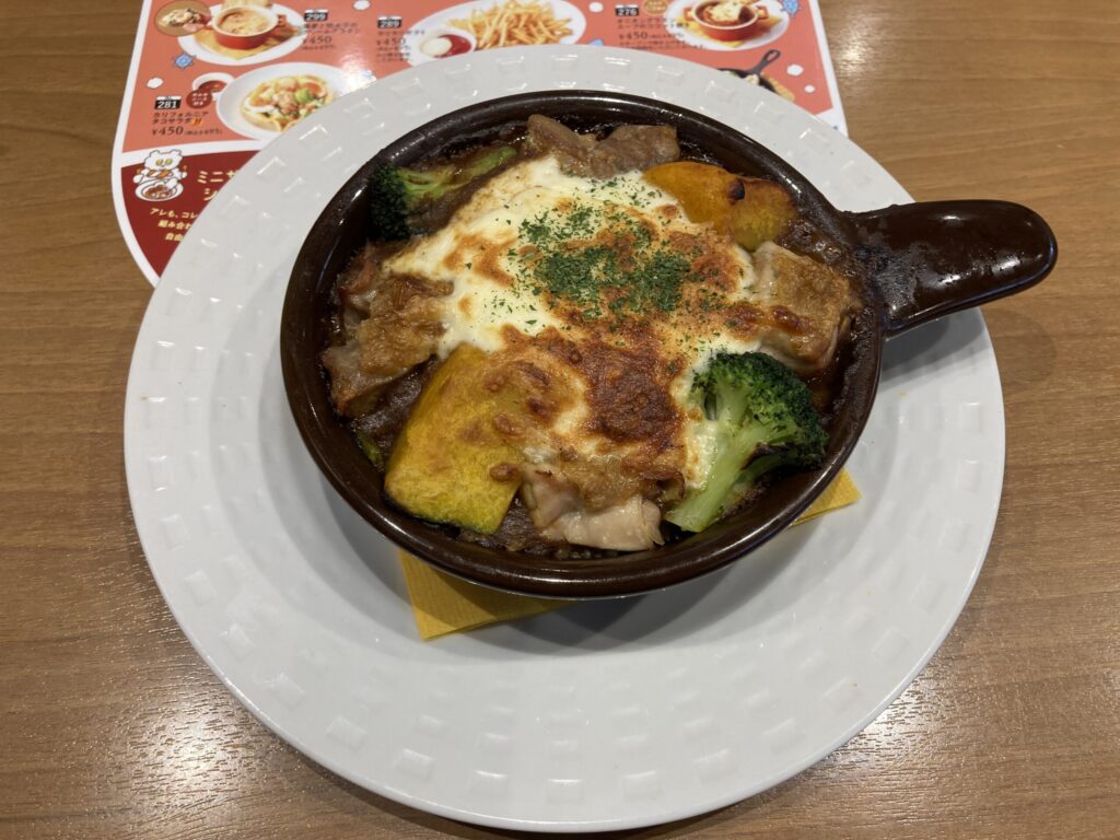 今回ごろごろチキンのチーズカレードリアランチを頼んだのでこのドリアが到着しました。