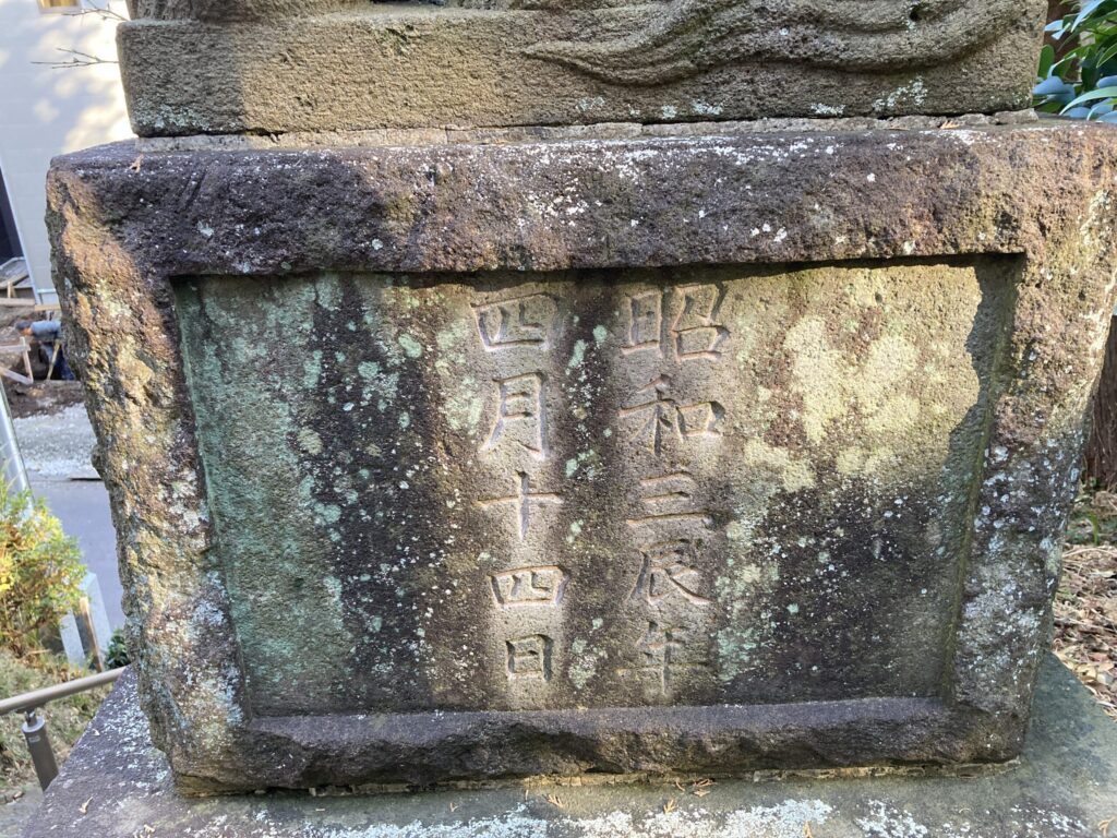 狛犬の裏に年号が彫られていました。昭和3年辰年なのであと2年で100年になるようです。