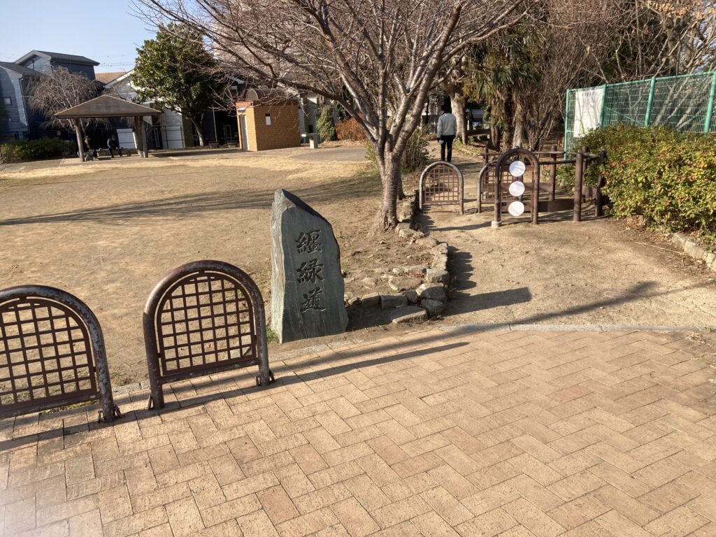 サイクリング道路に入るため纏緑道を通って公園のところに木ます。