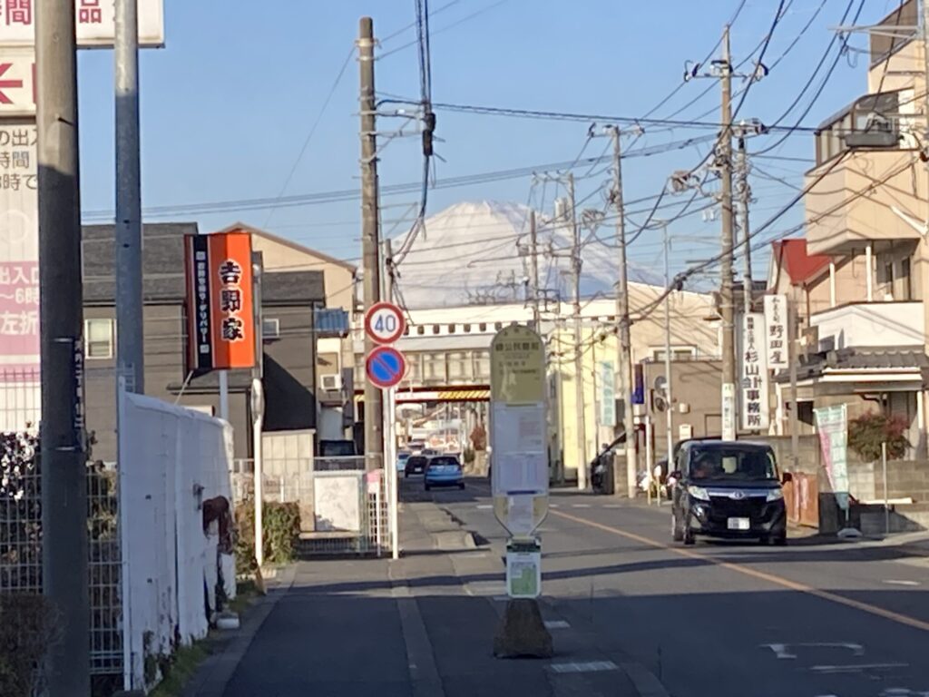 その前に纒公民館前のバス停のところで富士山をパチリしたよ。