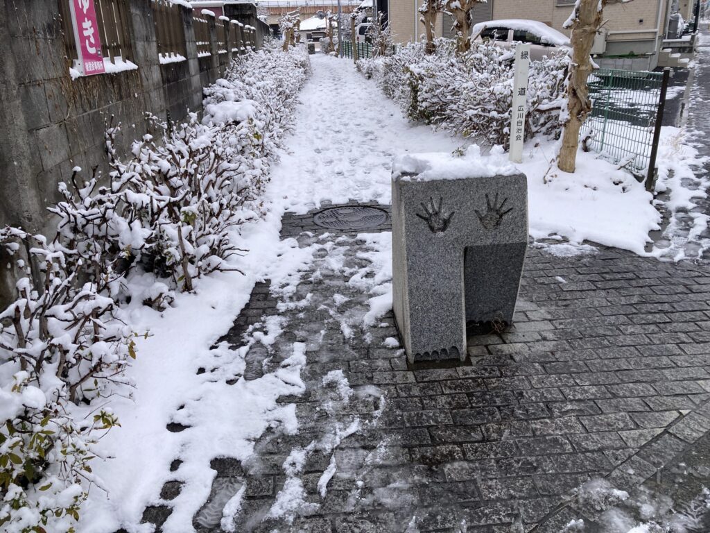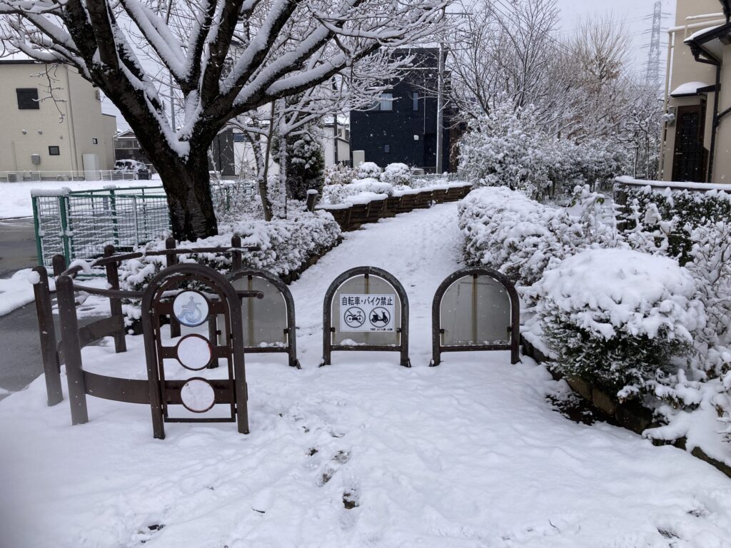 花壇のところをパチリした。しかしながら雪で見えなかったですね・・・💦