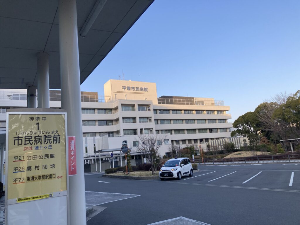 そして散歩の続きをしていきました。マミーのお見舞いに平塚市民病院に行きます。