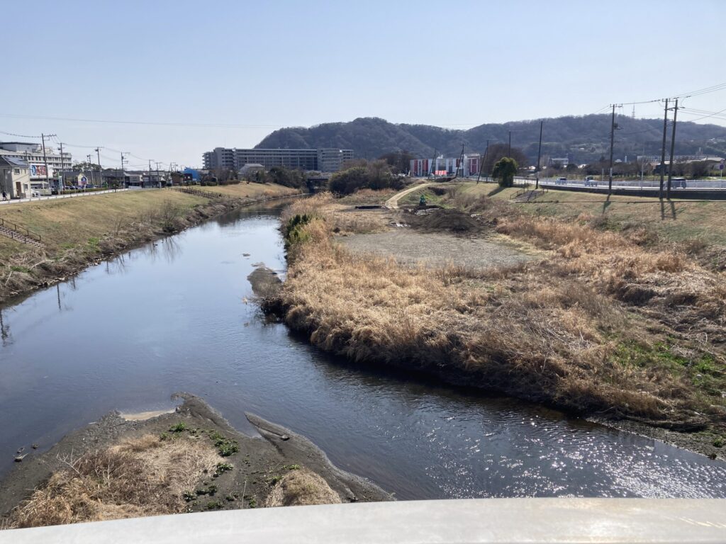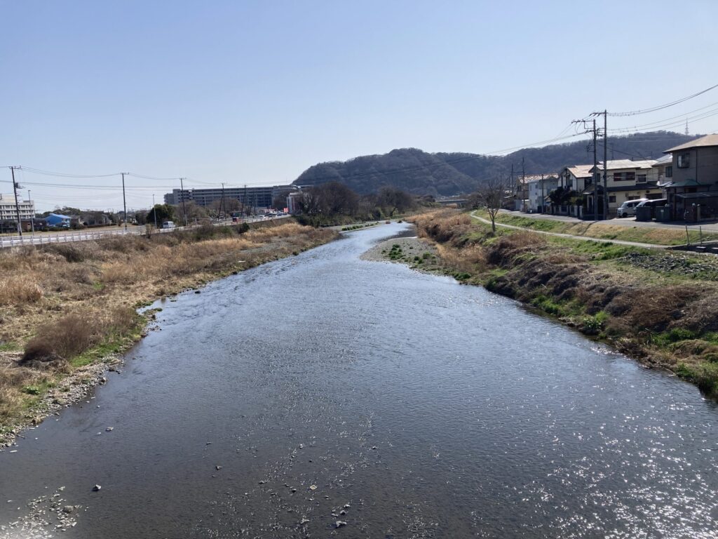 南原土手の十字路を渡って鈴川と湘南平もパチリした。