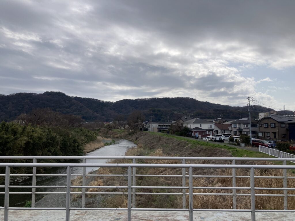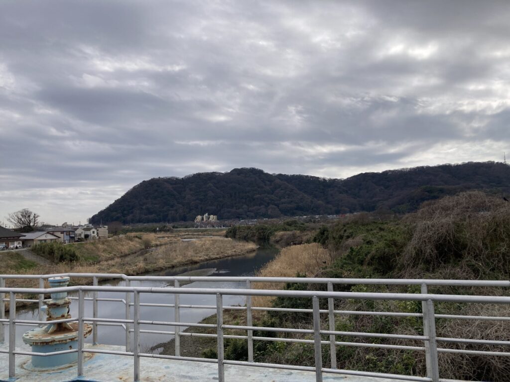 その後に平塚大橋のところで金目川と湘南平をパチリした。