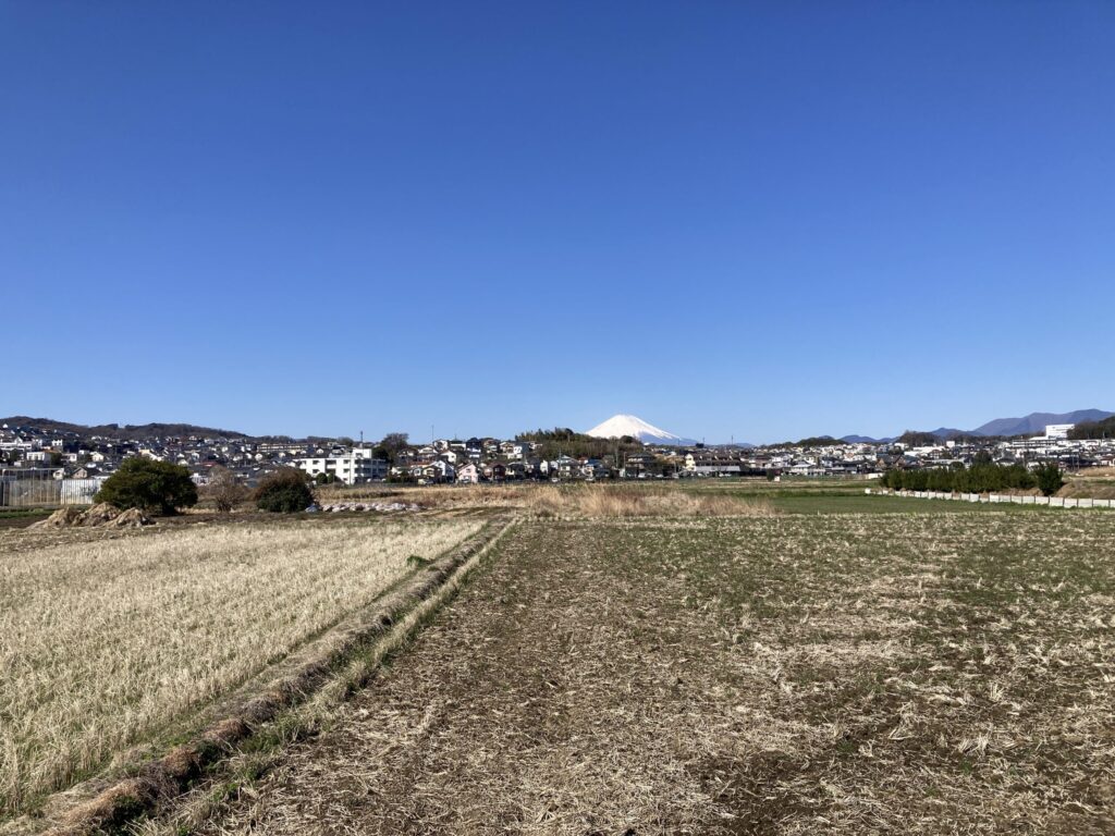 今日はあまりにも天気がいいのでさらに広川の方でも富士山をパチリした。