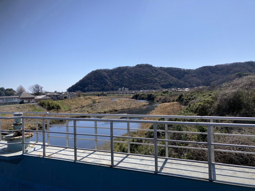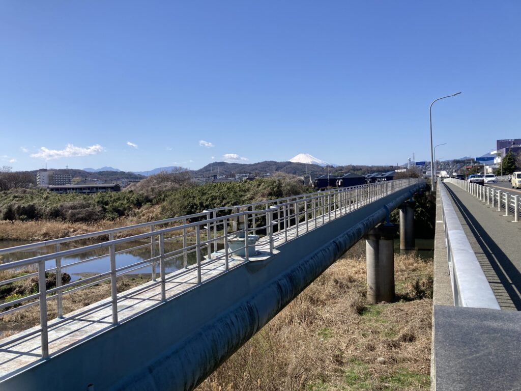 先ずは平塚大橋のところで金目川と湘南平をパチリした。