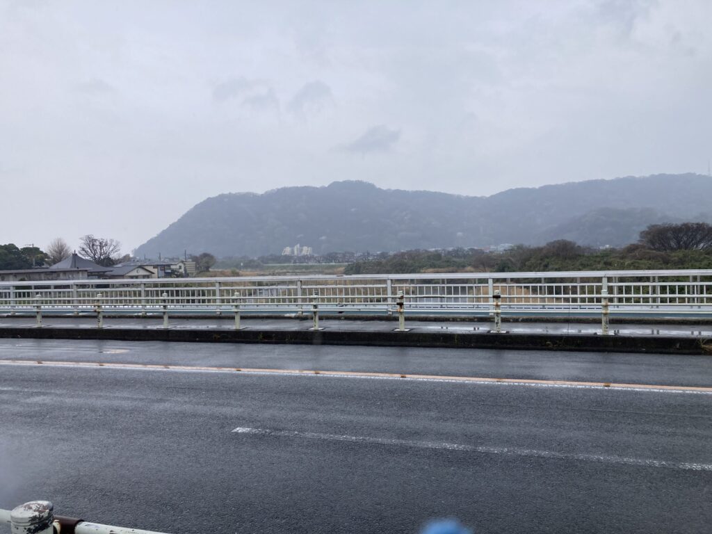 地面が濡れていて遠くの高麗山がかすんでいるような感じになっていました。
