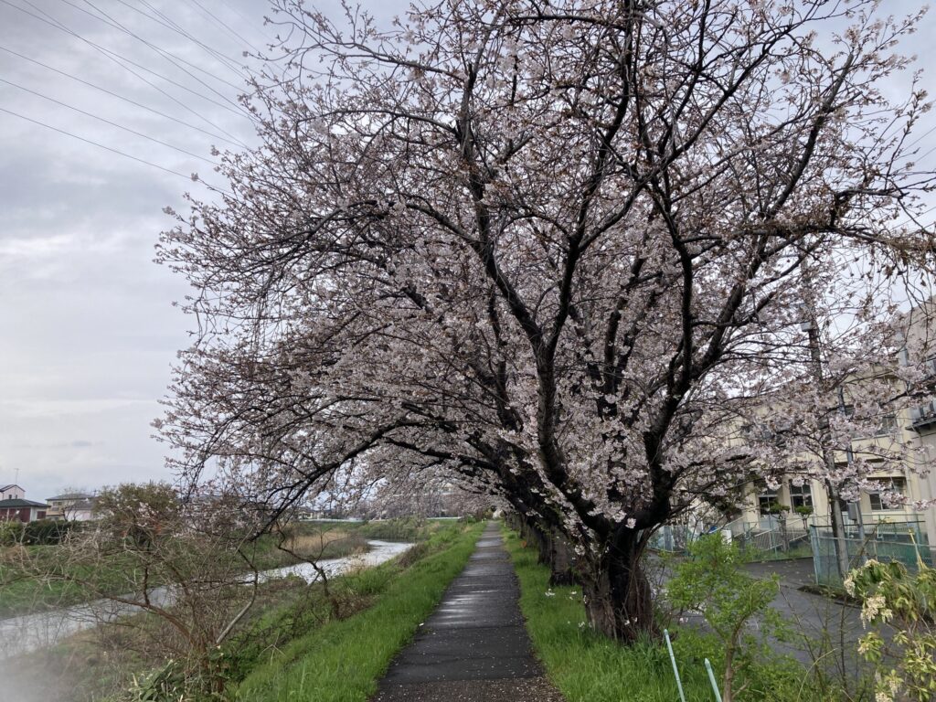 鈴川の竪堀公園から中原中学校までの歩道を歩いたのですが桜が咲き誇りっていました。
