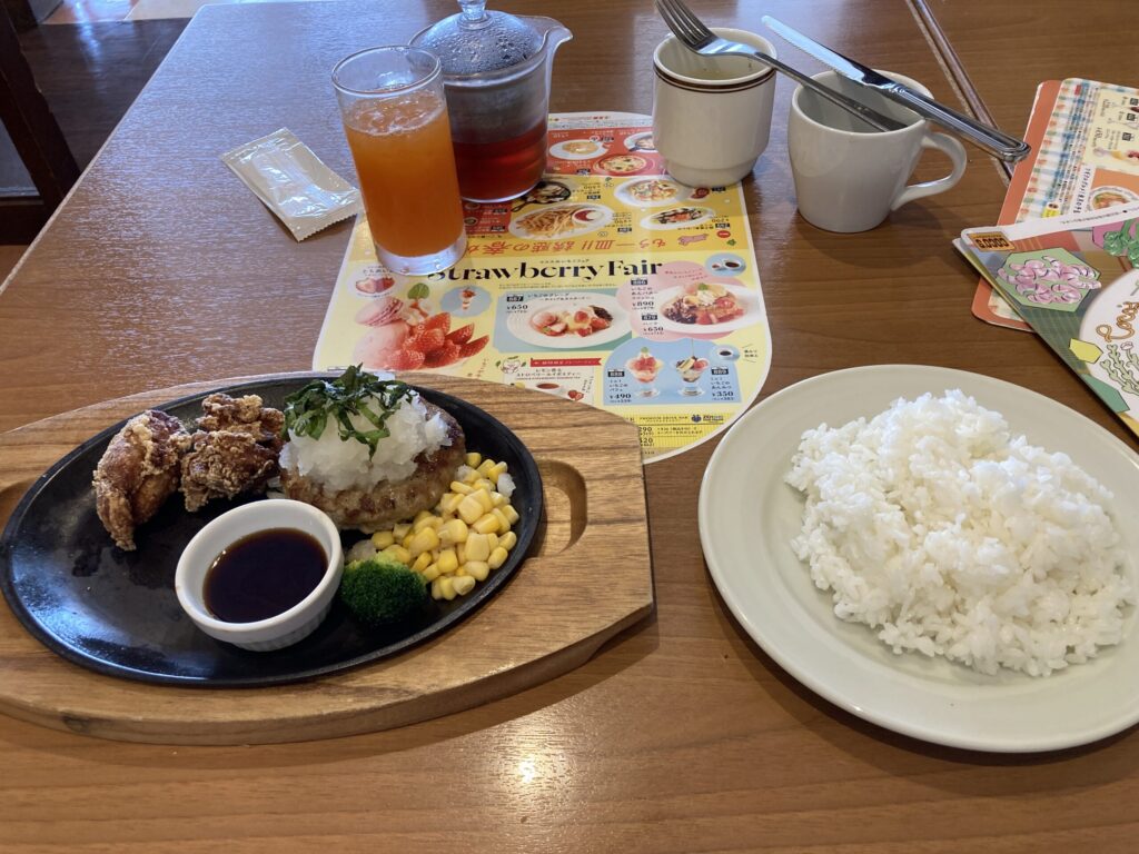 クーポンでランチコンボのプレートをライス大盛りで注文した。