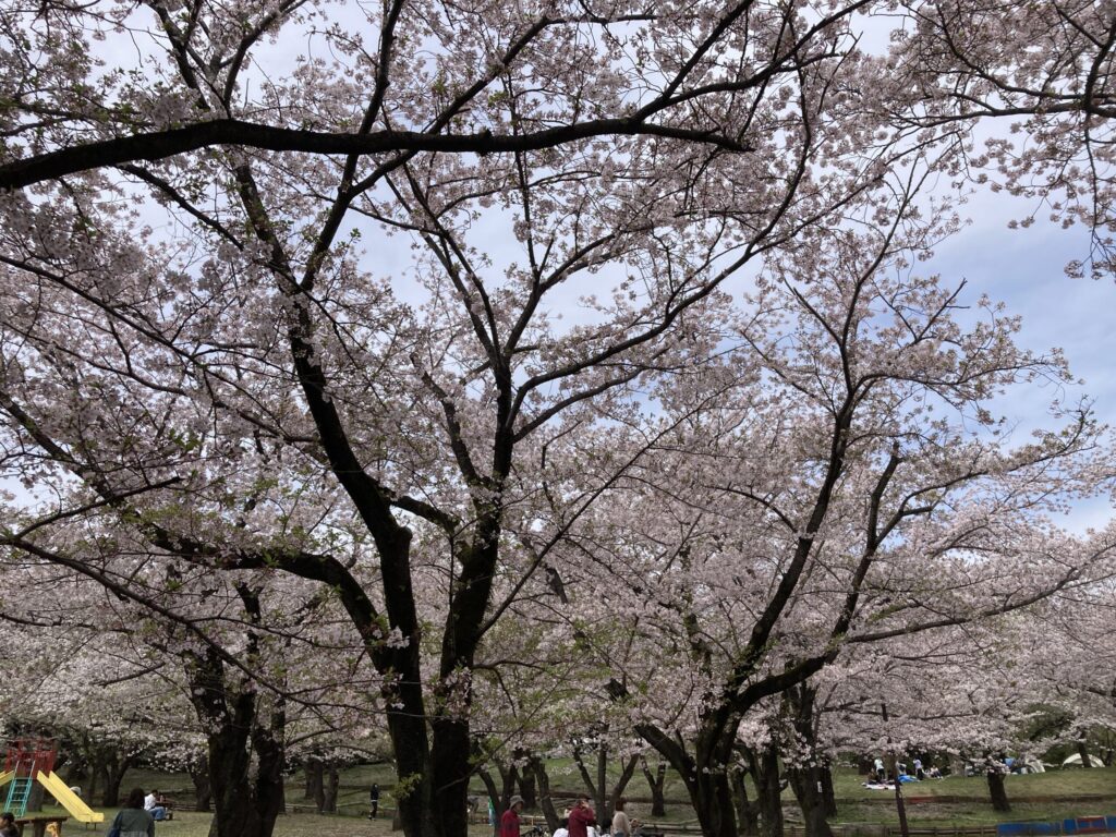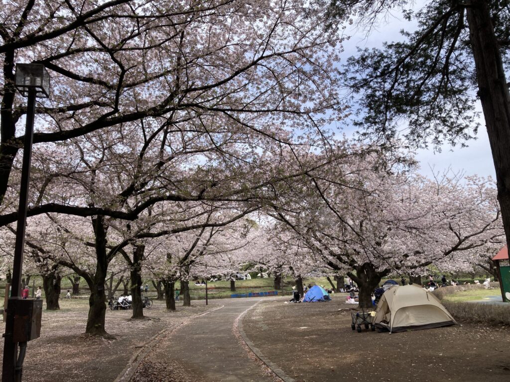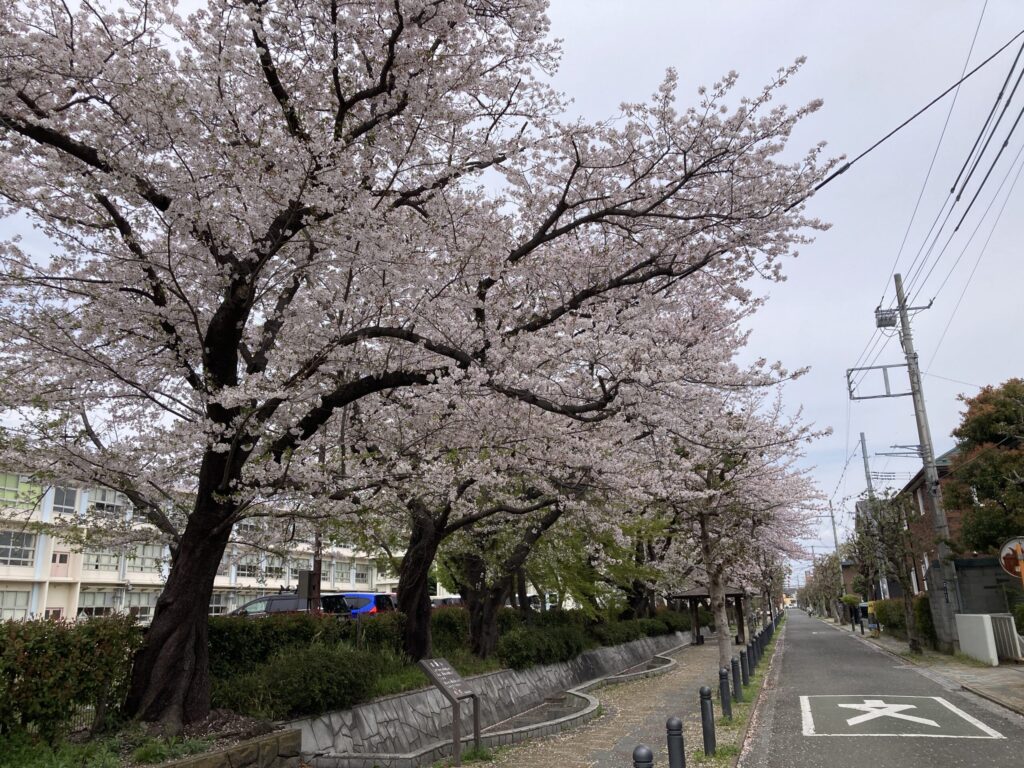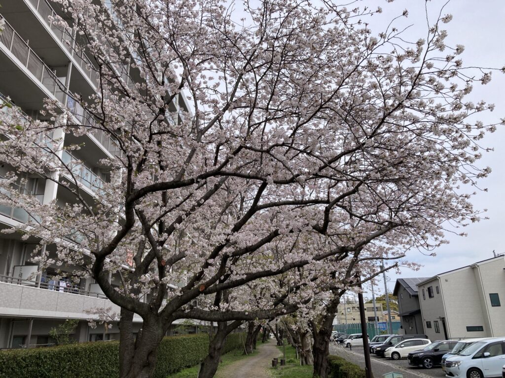 奥に見える桜は先日歩いたサイクリング道路の桜並木になります。