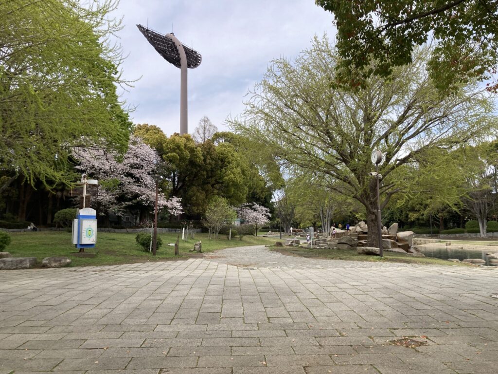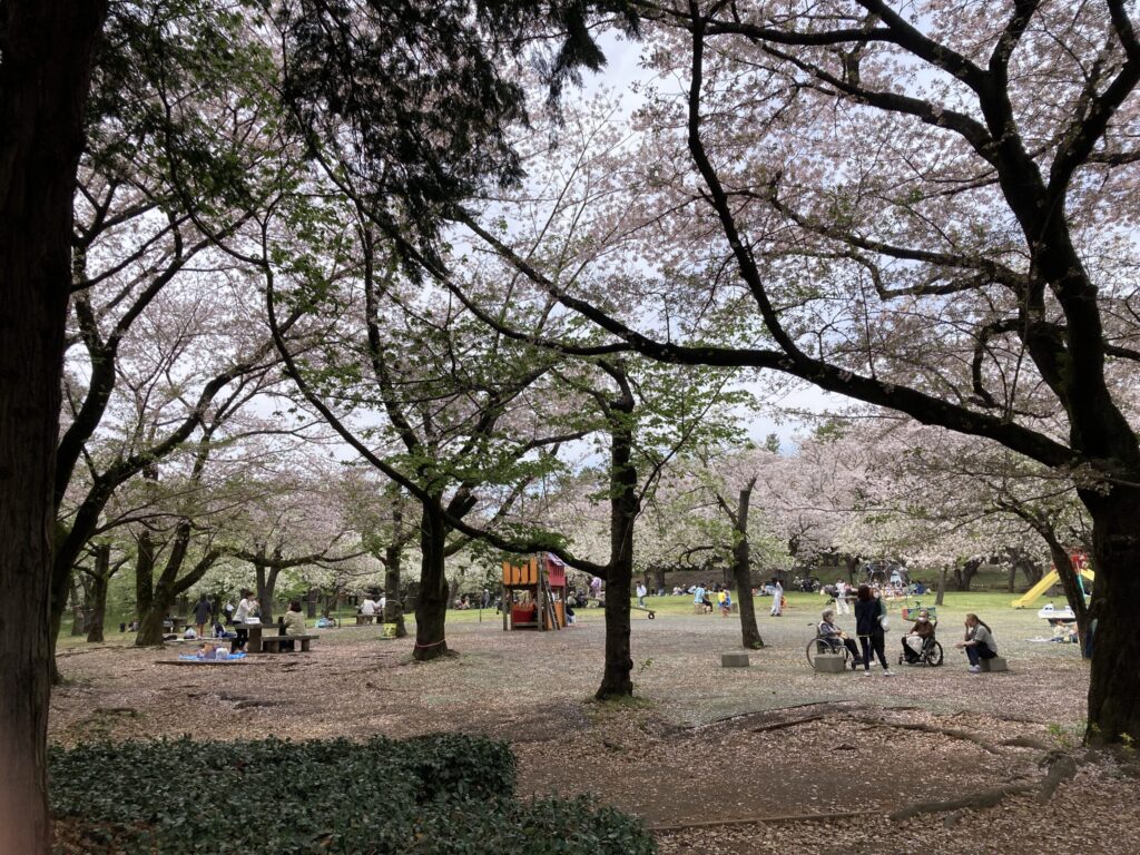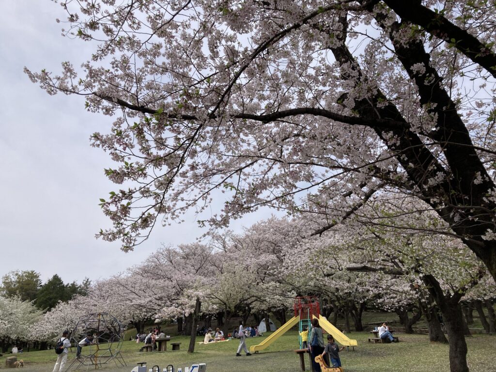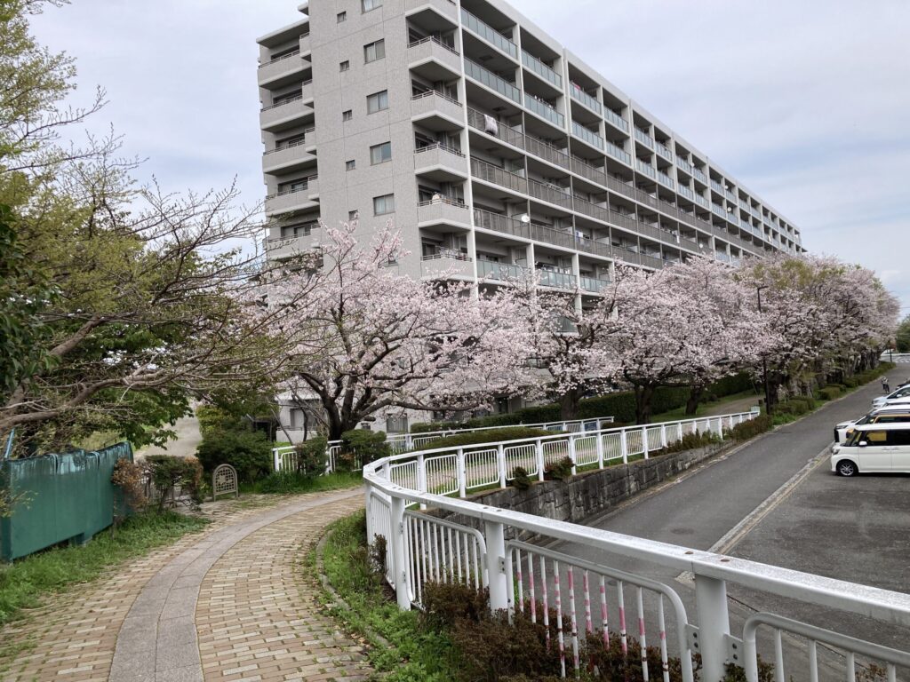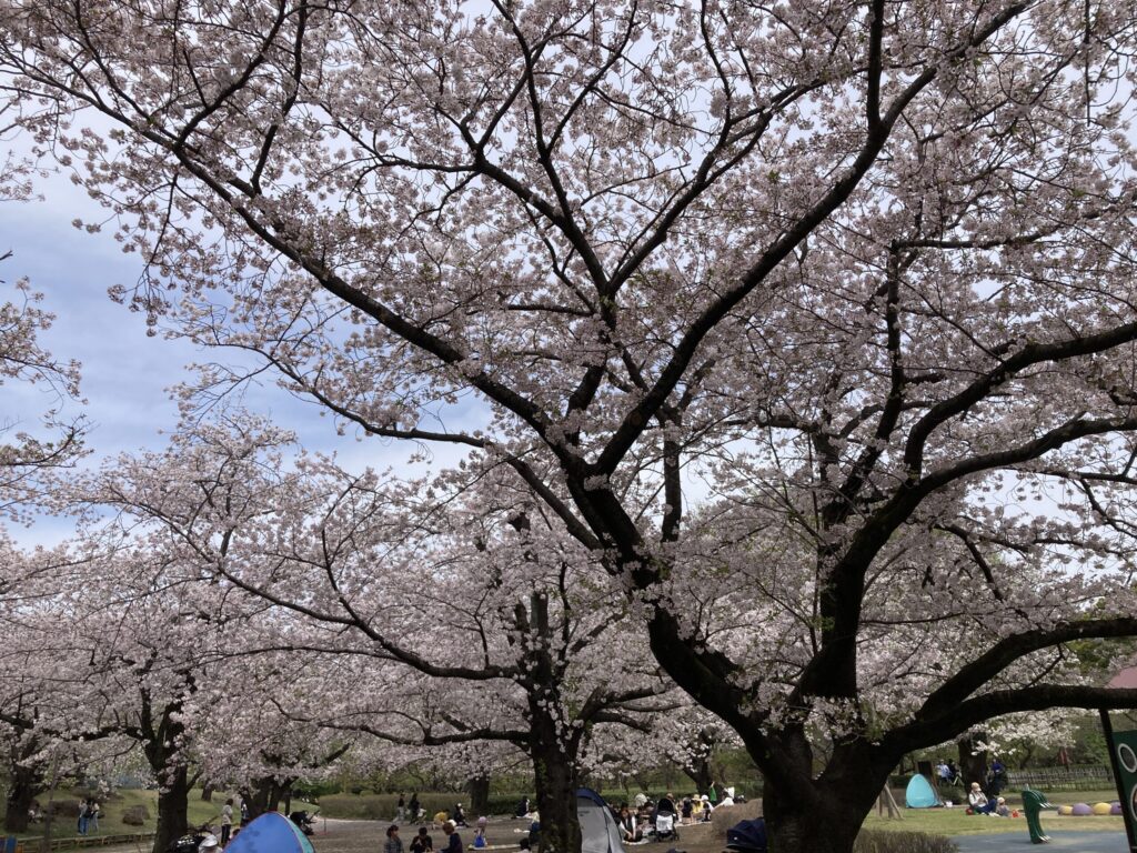 奥に見える桜は先日歩いたサイクリング道路の桜並木になります。