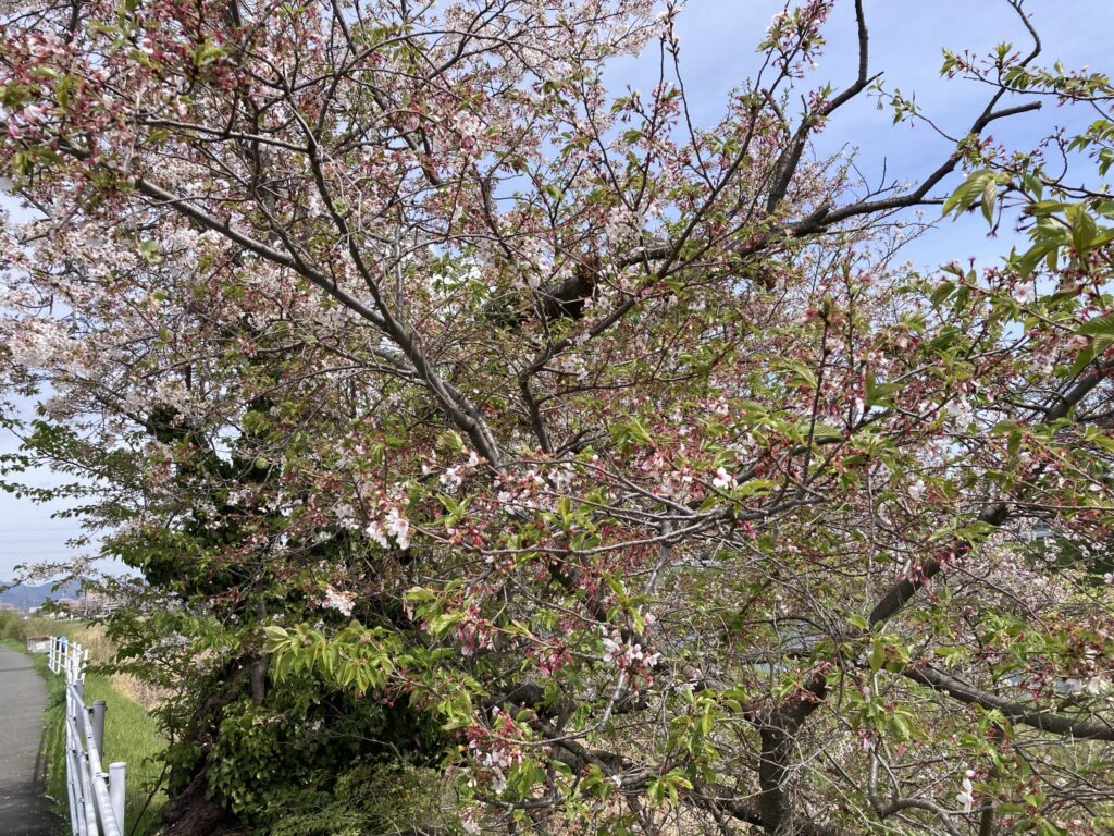 遠目のサイクリング道路の桜並木の桜もまだまだ咲いているようですがこちらも徐々に葉桜になっているみたいですね