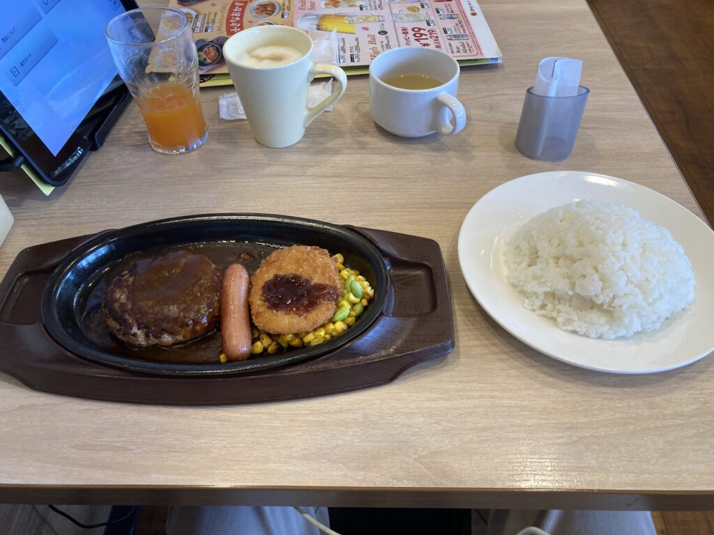 ランチメニューでチーズインハンバーグとコロッケでライス大盛りにしました。